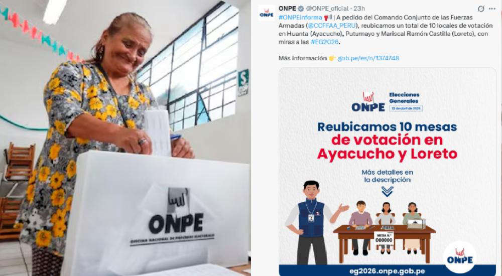 A pocos días de las Elecciones Generales 2026, la Oficina Nacional de Procesos Electorales (ONPE) anunció una nueva reubicación de locales de votación en diversas zonas del país.