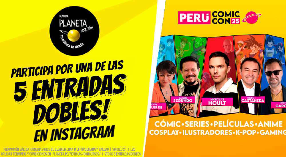 Cinco (5) ganadores se llevarán, cada uno, una entrada doble para asistir al evento de PERÚ COMIC CON a realizarse el 22 de noviembre del 2025 en el Parque de la Exposición de la ciudad de Lima (en adelante, el Evento).