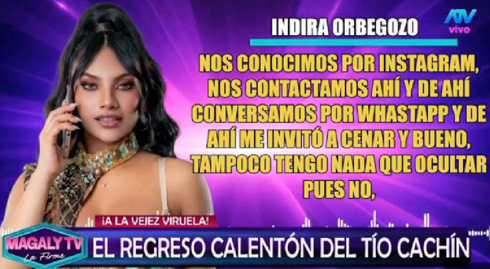 El programa conducido por Magaly Medina reveló que la joven se llama Indira Orbegozo, una cantante de salsa de 27 años. Según se informó, la artista es 34 años menor que el reconocido actor y jurado del programa Yo Soy.