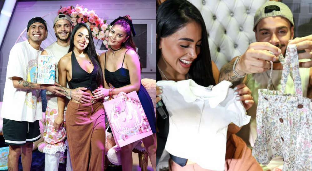 Laura Spoya y Gerardo Pe no dudaron en darle regalos al supuesto bebé que viene en camino. Mario no dejaba de cogerle el vientre a Onelia, quien solo atinaba a sonreír frente a las cámaras.