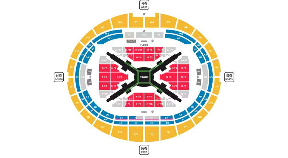 Estas primeras referencias provienen de los mapas de los conciertos programados en Corea del Sur y Estados Unidos, donde las plataformas de venta de entradas ya muestran el diseño del recinto. Todo indica que BTS contará con un escenario en formato 360, con cuatro pasarelas que se extienden hacia los extremos del estadio formando una X.