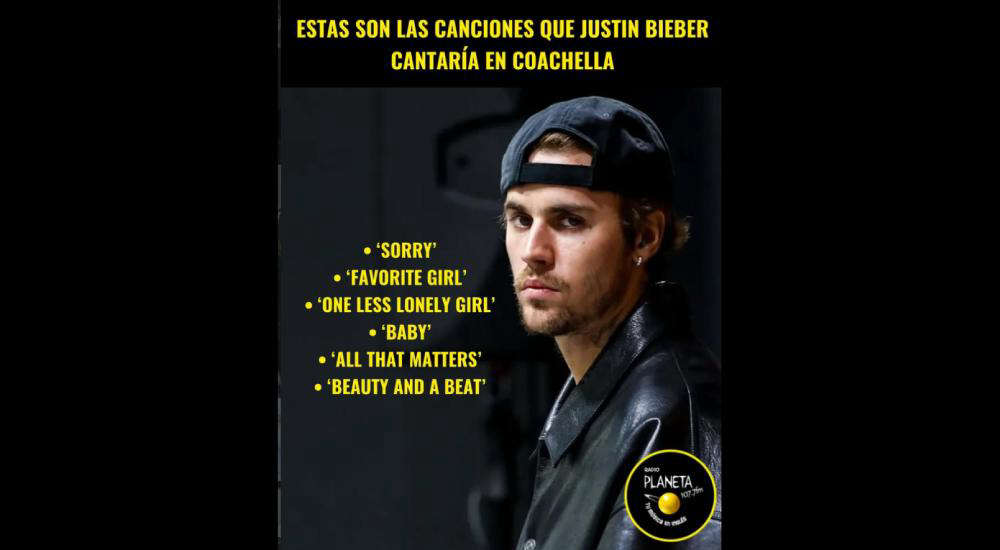 Coachella publicó en sus redes sociales que la presentación de Justin Bieber será el sábado 11 de abril. Se dice que esta presentación será única y llena de nostalgia; por ello, se confirmó que será transmitida en YouTube en el canal oficial del festival (LINK).