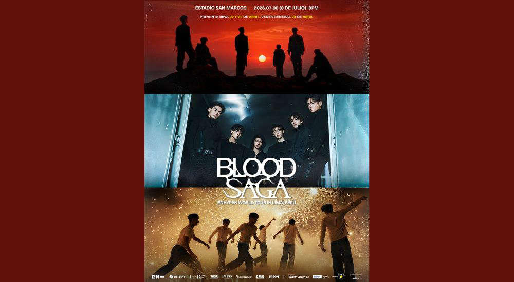ENGENE, el momento ha llegado y Lima se prepara para una noche increíble, el fenómeno global del K-pop, ENHYPEN, confirma por primera vez su presencia en nuestro país con un espectáculo del más alto nivel como parte de su nueva gira mundial 'BLOOD SAGA'. La cita será este 8 de julio en el Estadio de San Marcos, en un show que promete ser una experiencia intensa y absolutamente inolvidable. Las entradas estarán a la venta en Ticketmaster.