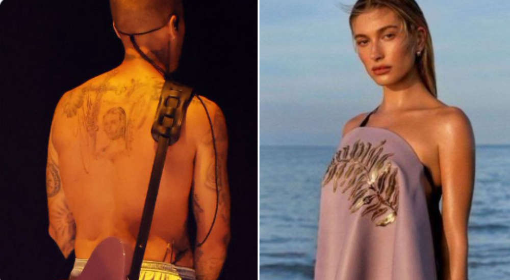 Sin embargo, lo que más llamó la atención de los fans fue el tatuaje que el cantante dejó al descubierto en su espalda, inspirado en su esposa, Hailey Bieber, quien se mostró visiblemente emocionada frente a las cámaras.